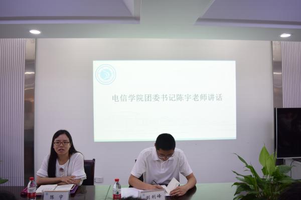 为了让电信学院第六届团学干部更好的回顾过去,总结经验,提升自我;加强电信学院第七届团学助理各项理论学习,完善自身综合素质。电信学院于2016年6月24日下午三点整在敬业楼2楼党员之家开展“青春正能量”团学干部述职报告暨优秀干事颁奖大会。本次会议由电信学院团委书记陈宇老师,学工办主任刘利峰老师参加此次会议,主席团助理吴莹霞主持此次会议。