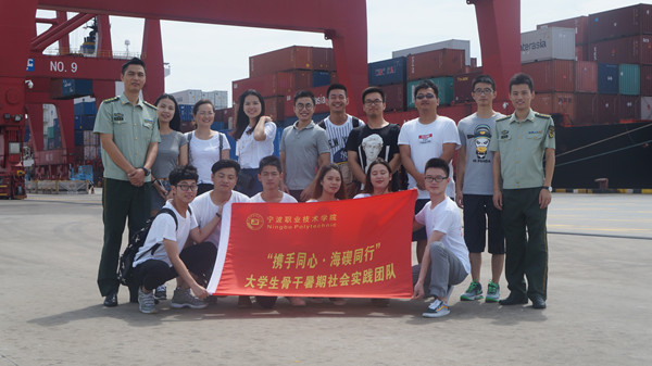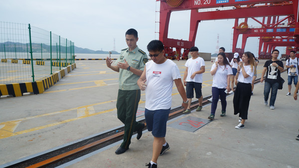 7月12日,海天学院的“携手同心,海碶同行”大学生骨干暑期社会实践团队在大碶团工委凌舟洋、陈雪芬及海天分团委书记张日益老师的带领下走进梅山边防检查站,参观梅山的港口码头,深入边检战士生活的营区,感受部队生活的严谨。