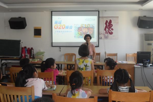 为教育引导广大青年学生积极践行社会主义核心价值观,提升学生思想道德水平和文明素养,以高度政治责任感和历史使命感,以当代学生良好的青春形象迎接G20杭州峰会的胜利召开,2016年7月20日上午,霞浦成校郑雪雅老师在黄鹂社区假日学校开展了以“G20峰会文明修身我先行”为主题的讲座。