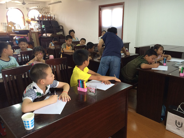 这不,7月26日上午,海天学院“携手同心,海碶同行”大学生骨干暑期实践团的学生给“灵动”继峰暑期班的小朋友上了“我为奥运送祝福” 迎奥运绘画课,孩子们都积极参与。“小画家”们在教室里绘画,大学生志愿者还细致地进行指导。绘画小能人们大胆构思,细心作画,作品也是各具特色,有的将吉祥物搬上了画纸,有的画着自己手拿彩球为运动员加油的场景,还有的已经迫不及待地画出中国健儿夺冠的瞬间。