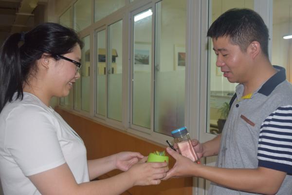 电信学院团委学生会的成员们早早的来到3317办公室集合,领取自己分配到要送老师的礼物与贺卡。大家热情高涨,早早的等候在老师的办公室门口,希望能够在第一时间送上电对老师的祝福与感激。同学们当礼物送到老师手上时,老师们都十分的惊讶与感动,礼物虽然不值钱,但重在于情谊。老师们也感谢电信学院分团委学生会们的祝福,感谢各班各年级的同学们的祝福。在这个特殊的日子里,每个人的脸上都洋溢着笑容。活动在美好的早晨就结束了。