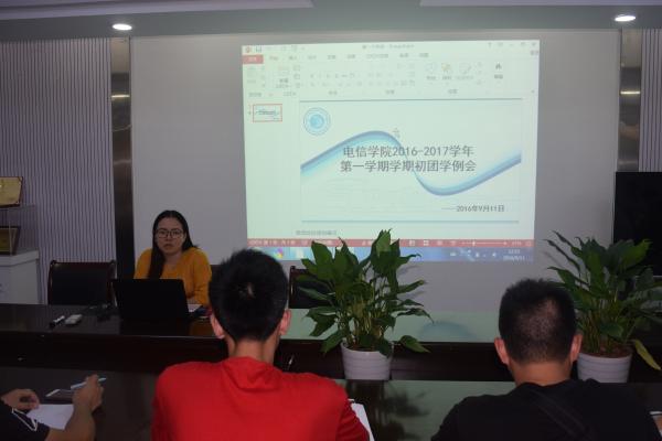 为了让电信学院团学助理们能够以积极的心态应对新学期的挑战,电信学院团委学生会于2016年9月11日中午12点30分,在敬业楼2楼党员之家召开本学期第一次团学助理例会。本次会议,由电信学院团委书记陈宇老师主持。