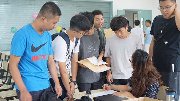 随着第一位新生的到来,班助们就开始忙碌起来了,饭卡,学生证,录取通知书的回收以及各种琐事,对于新生提出的问题班助们更是细细的给他们解释,直到最后一位新生来报道结束,班助们才肯放下手中的笔。虽然新生报道的一些事情很繁琐,但是班助们都是面带笑容的仔仔细细的办理着他们的事情,可见海天学院班助们的责任心之强。
