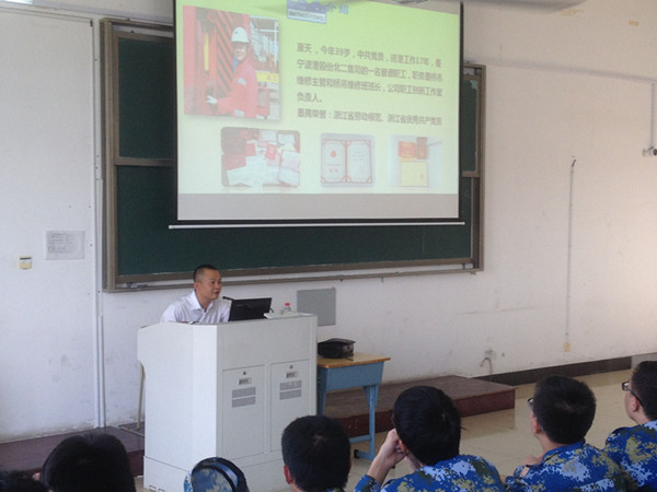 从设备专业前景拓展到对待工作的态度,用很多生动形象的例子为新生介绍工作时该培养的能力,以及分析了国内国际的专业设备差距。让新生了解到机电设备维修与管理的就业方向,以及应该在大学期所具备的能力。夏主管作为浙江省的劳动模范,提到了在工作中该培养有效的沟通交流,强调了良好的职业操守和不计得失的工作作风是每名优秀员工的共同点。鼓励新生,要对自己有信心,敢于尝试。