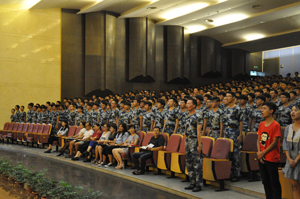 伴随着嘹亮的国歌声,16级新生开学典礼正式拉开帷幕。首先由海天学院院长范进桢老师致辞,在致辞中,范院长对新生们的到来表示衷心祝贺和热烈欢迎,对新生们在军训期间的表现做出了肯定,希望他们继续发扬军训期间吃苦耐劳的精神。之后海天学院团委书记张日益老师发言,张老师对新生首次班会中提到的四点要求重新强调一定要做好,做稳。最后带领着全体16级新生激情昂扬的喊了海天学院32字口号并对新生们再次表示了美好祝愿。