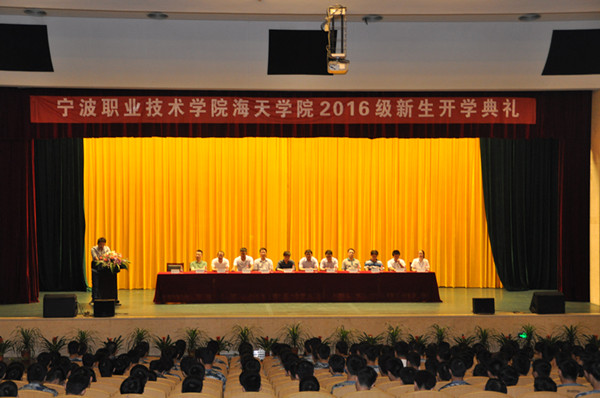9月28日早13时30分,海天学院2016级新生开学典礼在李惠利大剧院隆重举行。海天学院院长范进桢老师,党总支书记裘广宇老师,党总支副书记马俊骥老师,院长助理翟志永老师,机电一体化技术专业主任耿金良老师,模具设计与制造专业主任柯春松老师,机械制造与自动化专业主任张坤领老师,电气自动化技术专业主任丁洪起老师,实训中心主任娄用够老师,办公室主任何剑海老师,教学秘书刘玲燕老师,团委书记张日益老师出席了此次开学典礼,典礼由教工第二支部书记张海英老师主持。