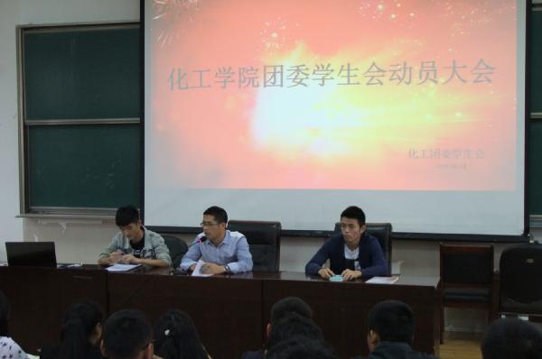 2016年10月12日星期三下午四点三十分,在2305教室召开了16届化工团委学生会动员大会。到场的有团委书记陈凯华老师,学生会副主席谢跃辉,体育部部长张坚,各部门负责人和大一新成员。