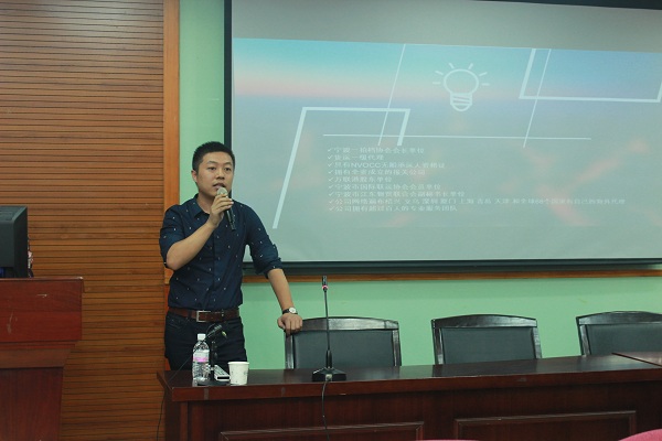 首先,由企业销售负责人徐总向同学们介绍了他们公司,宁波市泰迪国际物流有限公司是经国家批准的国际货运公司,主营进出口货物运输的货运代理企业,该企业是宁波一拍档协会会长单位,货运一级代理,万联港股东单位,宁波市国际联运协会会员单位等,具有NVOCC无船承运人资格证,拥有全资成立的报关公司等。招聘岗位有货代销售、海外客服、报关员等,徐总分别介绍了各个岗位的工作内容,他表示希望应聘者对工作有积极向上的心态,做一行爱一行,而企业需要与国外商合作交流使得公司对英语专业人才有所需求。接着企业人事部负责人翁女士为有意向的同学解疑答惑,她表示企业会对实习生进行专业的培训。最后,在分院团委乐伟老师的组织下,进行了现场集中面试。