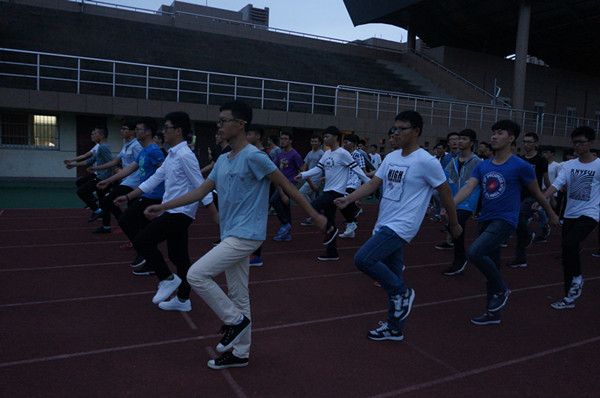 2016年10月18号晚上5点,海天学院的学子们,为了迎接第18届运动会的开始,紧张的筹备着准备工作,由几个班级里挑出优秀的人组合在一起训练。此次训练由我们的体育部学长于钦城,标兵严镇一同学带领大家训练团支部书记张日益老师在旁指导。