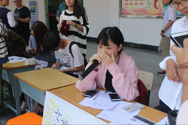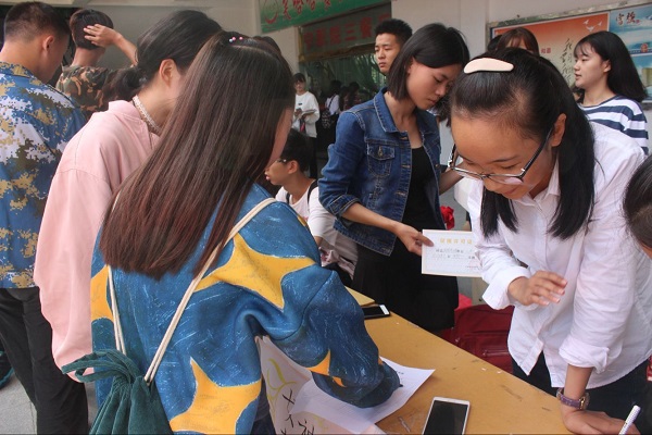 活动采用现场报名、分院报名和微信报名三种方式供同学们参与。活动现场放置海报,宣传活动的具体报名时间与方式。文娱部部长助理与部员们责任分配明确,大家各司其职,详细的向女生们介绍活动的内容和意义。起初,女生们较于腼腆,但在文娱部部长助理和部员们耐心为女生们解答疑难问题下,吸引不少女生驻足观看,使其积极报名,现场反应热烈,12点30分报名活动在同学们踊跃参与下落下帷幕。