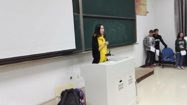 图为:钱忆老师做拉拉队情况介绍