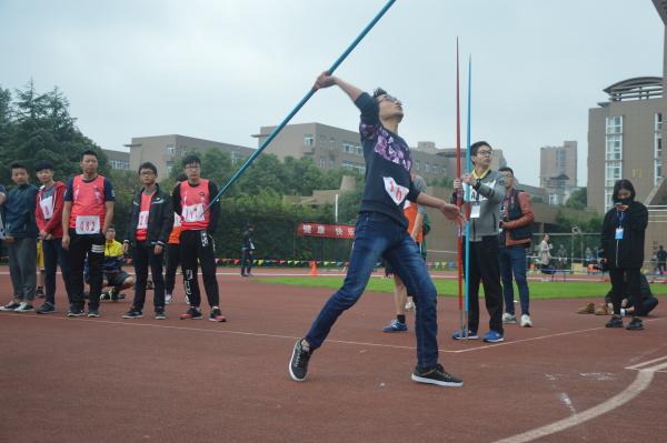 标枪赛场主在席看台的北偏东方向。萧瑟的秋风携带着丝丝的细雨,无法言语的寒风席卷着整个操场。即使是如此严峻的天气,也依然无法阻挡电信学子在运动会上为学院争光的信心,赛场上一幕幕看过来全部都是他们咬牙奋斗的情景,每一次的转身,每一次的投掷,都用尽了全身的力气,这是黄俊康、章上东同学经过不断的训练,与来自各个学院的强敌们竞争,最终取得的来之不易的名次。感谢他们为电信学院所付出的一切!