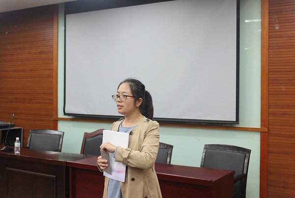 图为:吴艳艳老师正在讲话