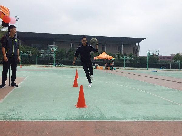 图为:国际学院学生参加障碍运球比赛