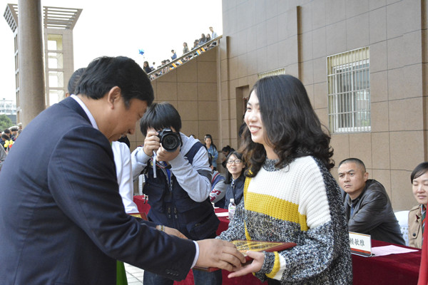 图为:校长颁发道德风尚奖