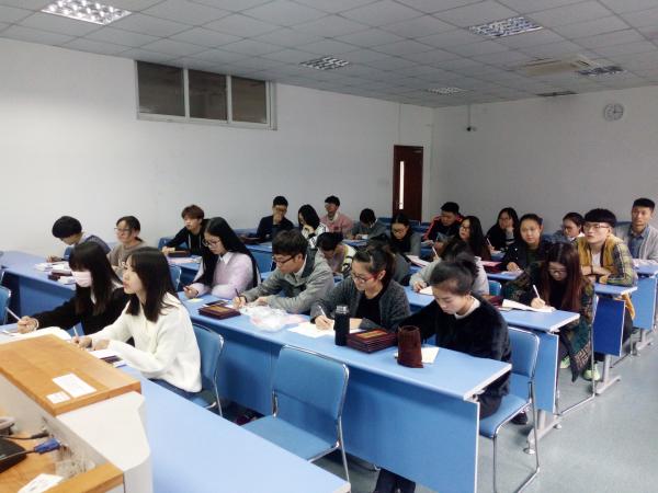 图为:大一各班班长、团支部书记认真听讲