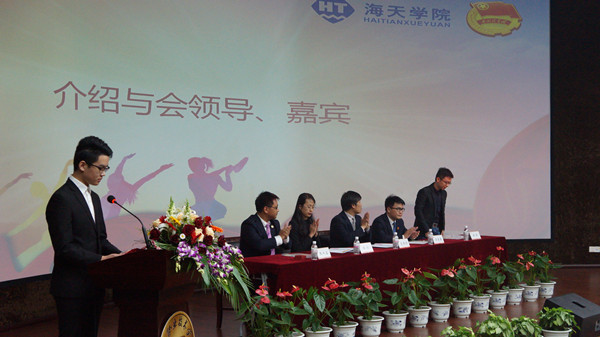 一次会议开始,会场全体在严肃的国歌声团员代表一次会议正式拉开帷幕。在热烈的掌声中,海天学院学生会副主席时年致大会开幕词,接下来,校团委副书记王欣和北仑区大碶街道团工委书记明星分别展开讲话,总结了上届海天学院团委学生会的工作,充分肯定了海天学院在团学工作及学生会工作等方面取得的喜人成绩,并阐明了本次大会的目的和任务,动员广大青年积极投身学风建设工作,为海天学院再创辉煌。老师们的精彩演讲后,海天学院对在运动会中的先进个人做出了表彰。