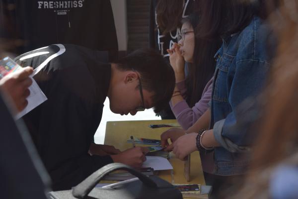 本次活动由主席团助理严璐瑶带领各部门干事,有序地分发决赛门票。由于事先在微信公众号上有过报名活动,所以现场显得十分井然有序,同学们在名单上找到自己的名字,签名,然后拿到属于自己的那一张门票。每位同学都希望能够一睹歌手们的风采,整个活动从开始到结束都没有出现恶意抢票的现象,在希望自己能够去现场观看比赛的同时,每一位同学都保持礼貌,不插队,不对工作人员口出恶言。