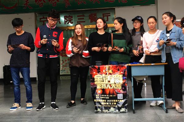 经过了一个多月的层层选拔,总院“金话筒”主持人大赛决赛即将拉开帷幕,同学们一定都迫不及待想一睹前12强选手的风采,11月21日中午11点30分于食堂门口举行了“金话筒”总决赛的抢票活动。