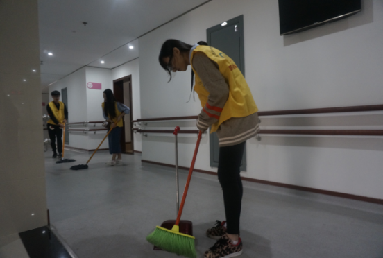 在福利院的工作人员中了解到福利院内老人的相关情况后,各小组负责人开始组织志愿者们有序地进入老人们的房间,主动开展志愿者服务。扫地,拖地,擦扶手......志愿者们忙碌的身影是最美的一道风景线。活动开展过程中,志愿者尽所能帮助老人,热情大方地和老人聊天交谈,从聊天的过程中可以听出,老人们是多么希望有人相伴聊天。看到老人们灿烂的笑容,听到老人们爽朗的笑声,志愿者们充分体会了本次活动的意义。