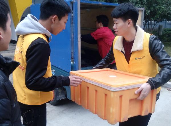 图为:志愿者为考生送饭