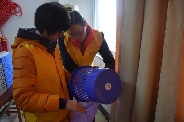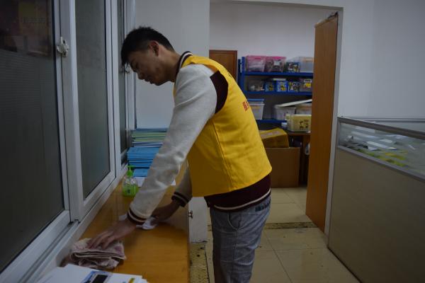 图:志愿者清理老师办公室