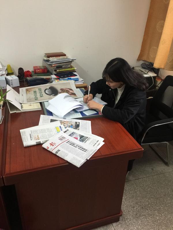 图为:实训成员整理资料中