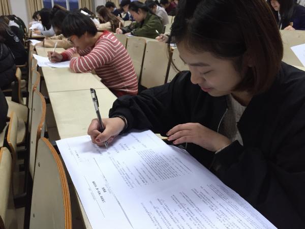 我分院学生积极参与,此次竞赛共169人参加。在试卷分发下来后,考场顿时鸦雀无声,同学们都埋头作答,只听到笔和纸之间摩擦的声音,同学们牢牢遵守考试规则,展现了工商学院的良好学习风貌。考试期间,监考员们秉承着“公平公正”的原则,尽职尽责,来回巡查考场,维护考场秩序,使考场秩序井然。
