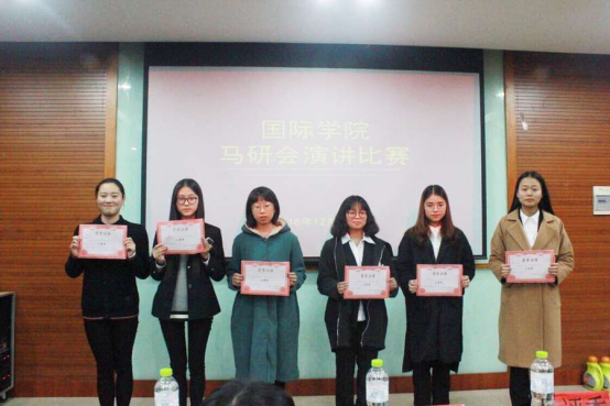 为进一步锻炼国际学子的口才和演讲能力,国际学院特于2016年12月11下午4点在国际学院102开展了马研会演讲比赛决赛。现场到场的评委有主席团后备齐家琛、朱海红、蓝欣欣、徐佳慧。参赛人员为从初赛中脱颖而出的12名选手。