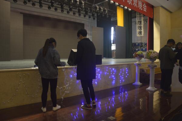 为了电信学院元旦文艺汇演圆满成功,使参演者了解节目流程,2016年12月22日12点30分,参加表演的同学在李惠利大剧院进行彩排。