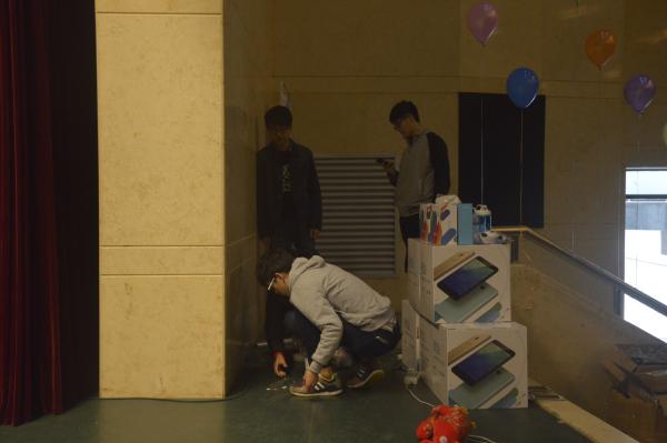 图:学生会干事整理电线