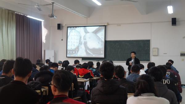 2017年1月4日中午12:40,在海天学院513教室举办了一场吉利集团的宣讲会。主持本次宣讲会的是海天学院机电一体化专业主任耿金良老师,出席本次宣讲会的是海天学院团委辅导员陈晶老师等人,参加本次宣讲会的有16级机电一体化专业3个班级全体学生。