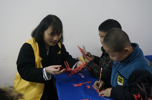 首先,志愿者向新浦的小朋友们介绍了春节的习俗与来历。在授课的过程中,志愿者们积极投入其中,与小朋友进行互动,让他们进一步地了解了传统节日并感悟到它的文化内涵,营造出浓厚的课堂氛围。随后,志愿者们带领小朋友们开展剪喜字活动,在此过程中,小朋友们兴致高昂,纷纷拾起手中的剪刀剪下属于自己的那个喜字,志愿者们在旁也以辅助的形式用心地帮助小朋友们,锻炼了他们的动手能力和思维创造力。