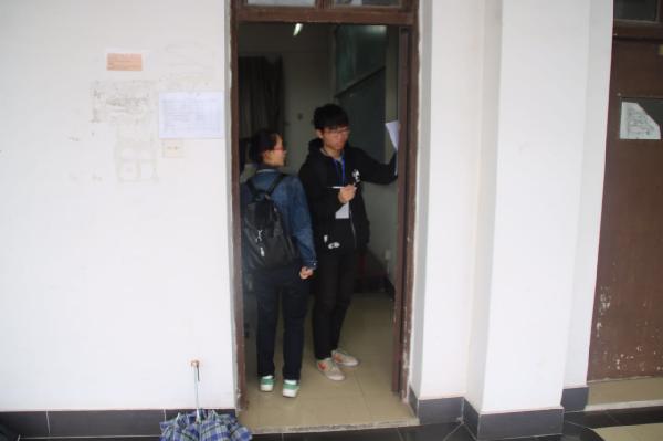 图为:纪检部干事进行签到工作