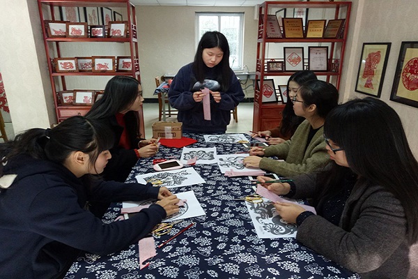图为:剪纸小组 社团学习