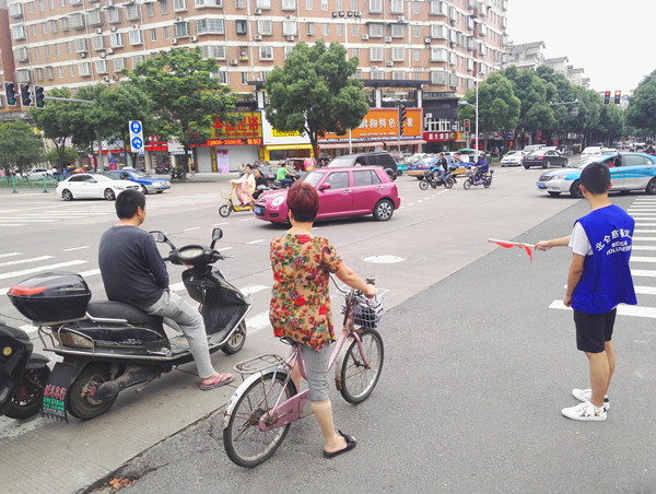 当义工负责人与交警表明来意之后,交警将指挥交通的方法教给了义工们并将他们进行了统一协调分配,使其各自在固定的岗位上执行自己的任务,协助交警指挥行人和车辆乱闯红灯的行为,保障出行者的安全,避免交通事故的发生。在活动过程中,义工们手举小红旗,熟练地指挥着交通,当有行人闯红灯时,在义工们的耐心劝导下,他们退回了原地等待红灯。义工们热心、积极、主动的服务,得到了活动负责人和交警的认可和赞扬并给予他们很大的鼓励。