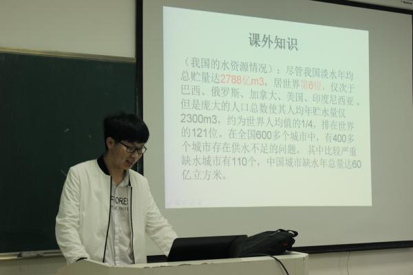(图为:化工3163班长正为同学们讲解“五水共治”)