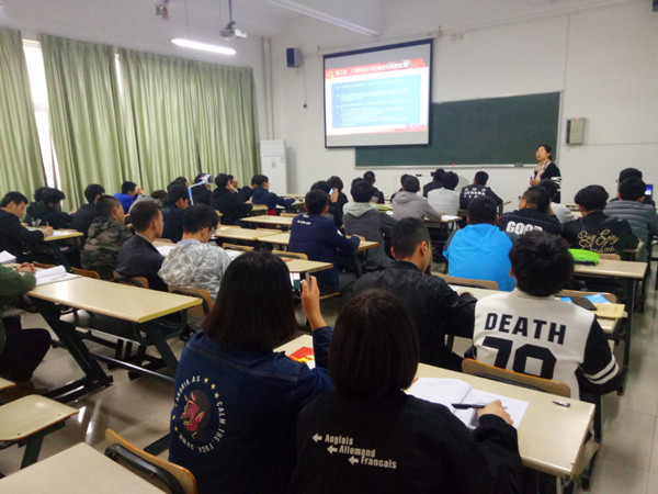 4月11日中午,来自教工第二支部的梅晓妍老师在海天楼518教室为全体入党积极分子授第九次党课。