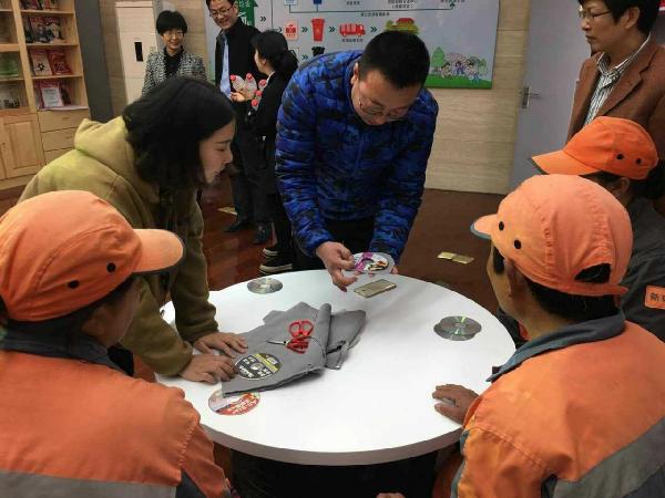 宁波职业技术学院工商学院辅导员魏雷老师带领学生志愿者,为北仑区环卫工人代表共同开展了一场精彩纷呈的垃圾分类主题互动活动,活动以废弃光盘、旧布等废旧物品为原材料,用针线穿引,制作精美的杯垫,以传达“垃圾分类,绿色环保”的理念。活动过程近了学校师生与环卫工人的距离,志愿者们细心的讲解制作流程中遇到的问题。张如平主任和余宁主任也亲临旧物改造工作室现场参观和指导。张主任表示旧物改造活动很有意义,增强了人们的环保观念。