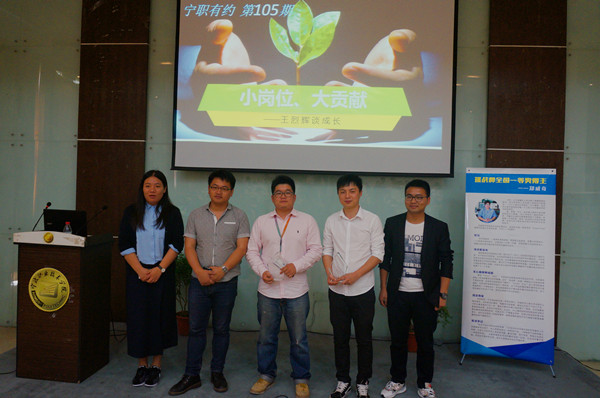 王烈辉,毕业一年被评为“宁波市首席工人”,用自己的产品诠释精雕细琢、精益求精的“工匠精神”。通过访谈的形式,王烈辉校友为同学们讲述了他在海天集团成长的经历和感受。拉近了与同学们之间的距离,通过分享自身就业经验与感悟,他提醒同学们一定要珍惜大学时光,学好专业知识、提升专业技能,还要有志存高远的信念、脚踏实地的精神、坚持不懈的追求和目标。要实现高层次就业,就要在校期间学好理论知识,扩大专业视野。