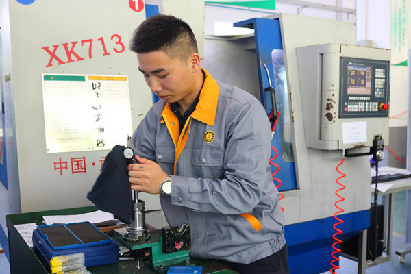 比赛现场,各参赛选手心无旁骛,高度专心在操作机台上争分夺秒却又有条不紊。就算时间紧迫,但丝毫不影响选手们的努力,欲在这最后的短短时间将自己的作品做得更好,那一丝不苟的神情专注地对着机器,这都是对学生亲身实践能力的计量考核,或大或小的小目标,或多或少的小坚持,这些都能从技能大赛中淋漓尽致的体现出来。