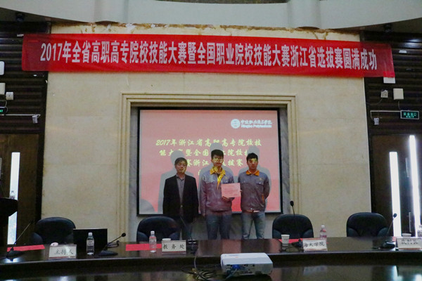 次日,在全省高职高专院校技能大赛暨全国职业院校技能大赛浙江省选拔赛闭幕式上,由“工业产品数字化设计与制造”赛项裁判长宣布了比赛成绩,金华职业技术学院获得一等奖,宁波职业技术学院获得二等奖,杭州科技职业技术学院、台州职业技术学院获得三等奖。