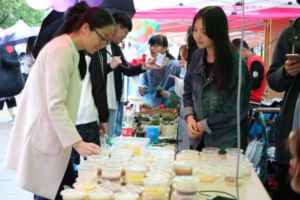 (图为:化工学院开设的塑泥彩绘DIY摊位)