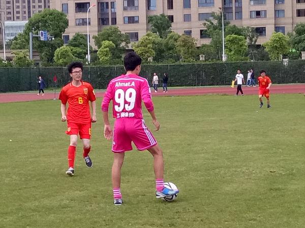 2017年5月3日下午,工商学院VS服务外包学院的男子足球赛在操场激烈进行。参加此次足球赛的有足球运动员们、裁判员以及啦啦队。