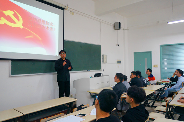 裘广宇老师以一种相互交谈的方式进行授课。课程伊始,裘广宇老师向同学们提问:“党的宗旨是什么?”以及“为什么要入党?”,围绕展开。他谈到入党不单要从组织层面上入党,同时也要从思想上入党,而行为上入党的同时,也要重视党章。他认为心智的提升在入党方面起到重要作用。作为一名党员要以身作则,从而更好的带领群众走向“中国梦”。作为一名入党积极分子生活中要从细微的地方入手,心怀远大的志向,同时在入党时要明确一个目标,这个目标就是信念。