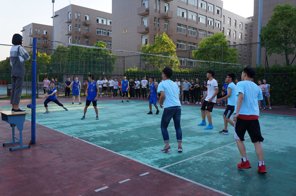 5月10日傍晚,海天学院VS建工学院“体育文化节”男子排球赛在宁波职业技术学院露天排球场举行。