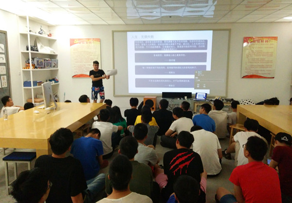 2017年6月4日,机电(海天)学院1608届团学培训班第十次课程,在海天学院406展开,本次培训班课程是由组织部部长蓝益飞来为干事们授课。