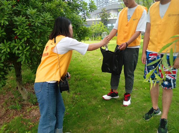 章晨洁在巡河过程中仔细地查看了河道边,雨水、生活水排放口,发现垃圾堆放的现象十分严重。志愿者们便纷纷在河道边展开了清洁活动,拾取河道边的落叶和塑料包装,用竹竿打捞水中的塑料袋,瓶子和杂草等。在志愿者们的不懈努力下,河道渐渐变得整洁了。