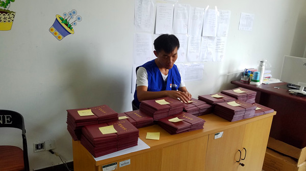 志愿者以耐心的态度展开周到的服务,让这个伤感的季节里,增添了一丝温暖的情谊。活动中,义工志愿者们帮助老师分发毕业证、将毕业生带到毕业典礼、毕业生学士服发放与回收,活动从当天上午八点一直持续到了下午六点。尽管这天气炎热,但他们一直勤恳地完成任务,碰到学长学姐便会主动热情地上去引导。