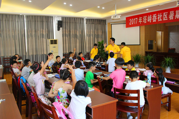 图为:开学典礼现场 据悉,今年为塔峙岙社区首次举办假日学校,对本次假日学校的开办极为重视,为了使课程多元化,课程内容丰富,不仅邀请了烘焙老师、书法老师、在职教师以及我院大学生志愿者等进行日常文化素质课程的授课,还设置了参观部队等一系列户外实践活动,让小朋友们在玩耍中学习,度过快乐而充实的暑假! 袁野 文 杨颖琦 摄